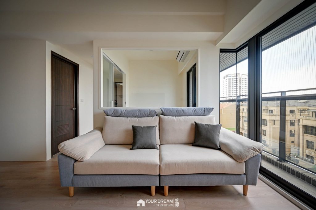 沙發後方書房-以玻璃拉門區隔,在其中靜心閱讀,不會被外界打擾。